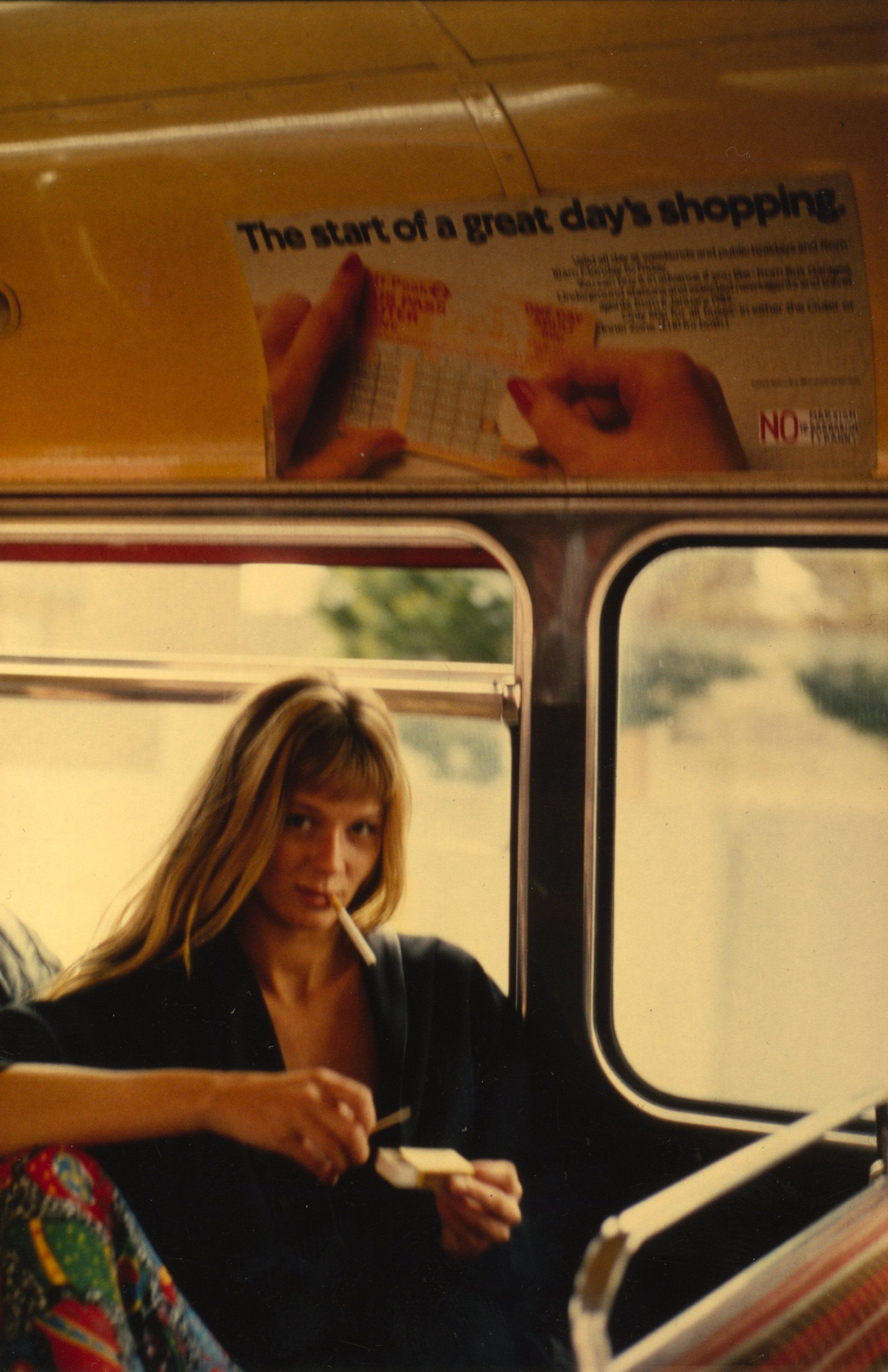 Stephanie Lange smoking in the bus in London(1983) photo by ralph "von" richthoven